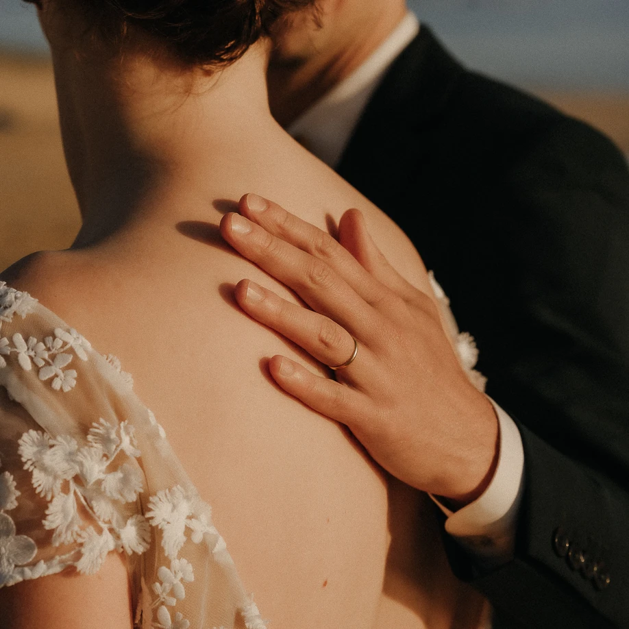 Douceur et chaleur : La lumière en fin de journée est douce et chaleureuse, ce qui mettra en valeur vos teintes de peau. Contrairement à la lumière dure et blanche en milieu de journée, elle crée une ambiance plus romantique.